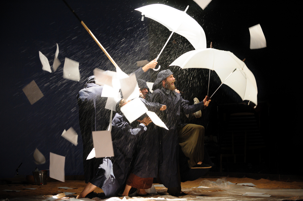 Shakespeare siempre es desmedido, pero la versión de La Tempestad que se ha estado mostrando este mes en el Matadero de Madrid es un exceso. Anoche acabaron un mes de representaciones. Anoche se despedían de las tablas -de las arenas, más bien- que les han acogido durante veintitantas noches. Todo un mundo en el teatro. Tantas funciones generan un ambiente de familia, donde el amor -o el odio- ya es para siempre.